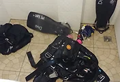 다이빙 다녀오면 지친 몸을 이끌고 저 픽업트럭에 짐을 옮겨넣고 장비실로 가서 정리를 해야해.