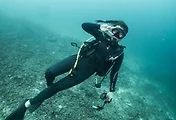 어드밴스드 과정 중에서 '언더워터 포토그래피 다이빙'을 하고 있는 교육생의 인생샷을 위해,