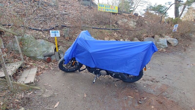 아침에 서리내리면, 바이크 닦고 쓸고 하기 귀찮으니 미니 타프도 씌워줬다.