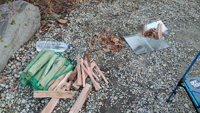유튜버를 보면서 쌓아왔던 나의 로망, 나이프로 바토닝하기도 해줬다. 역시 캠핑은 어른들의 소꿉놀이다.