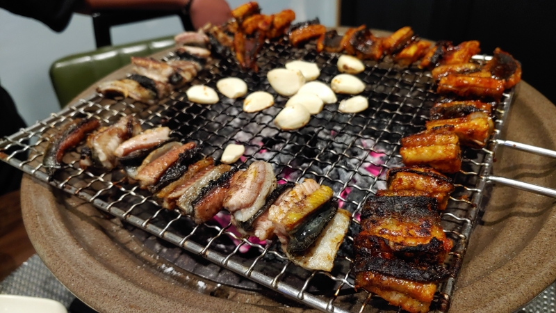 장어에 마늘에....