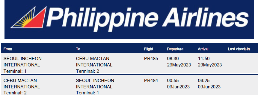 그래서 바로 공홈에서 필리핀항공으로 예약했어.