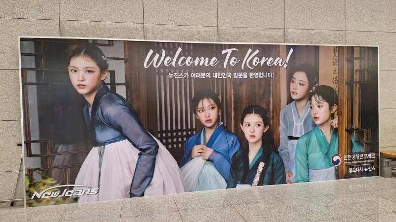 우리 뉴진스의 환영인사를 보고 흐뭇해 하면서 짐 나오길 기다렸지.